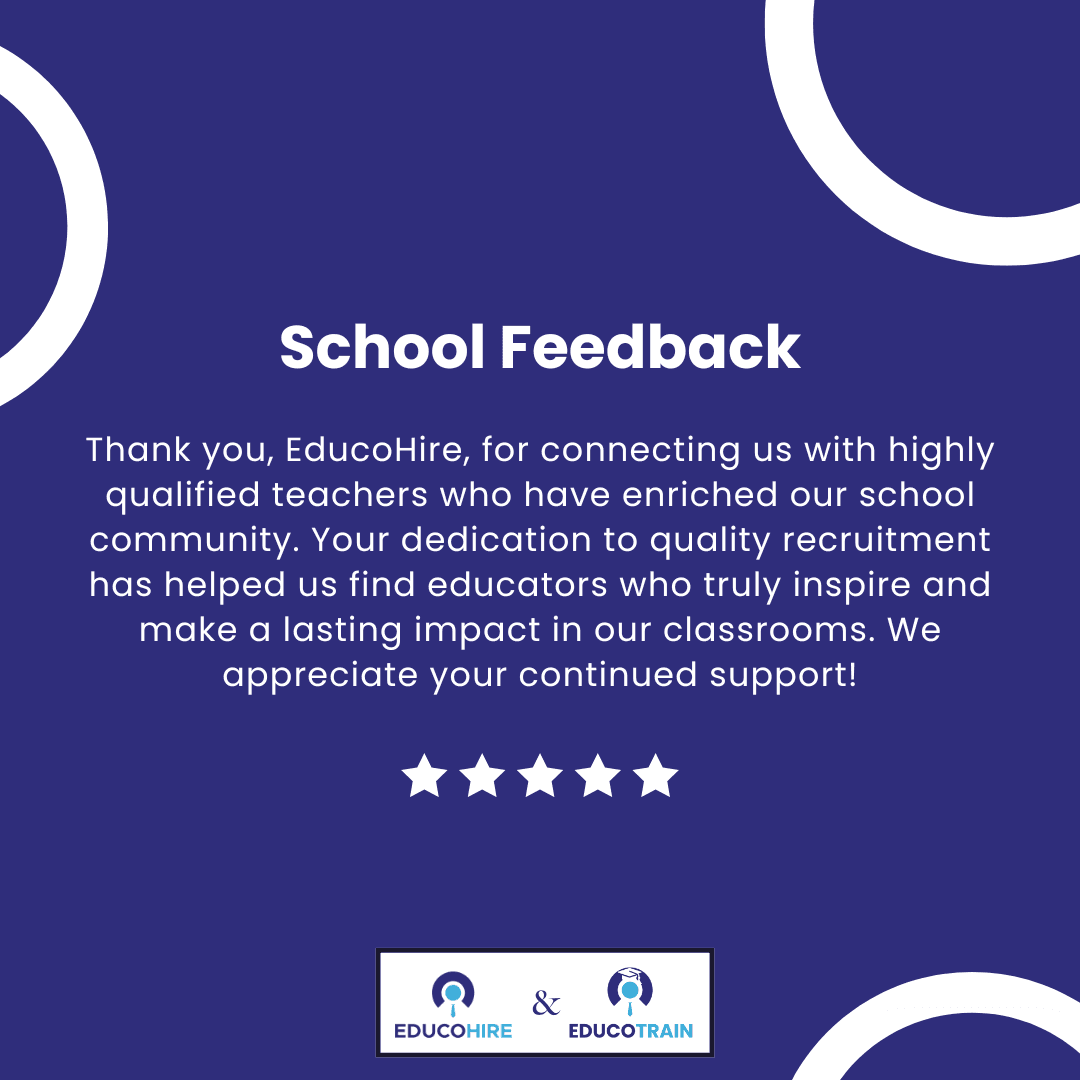 "Thank you, EducoHire , for connecting us with excellent teachers. Your support has truly strengthened our school community!"